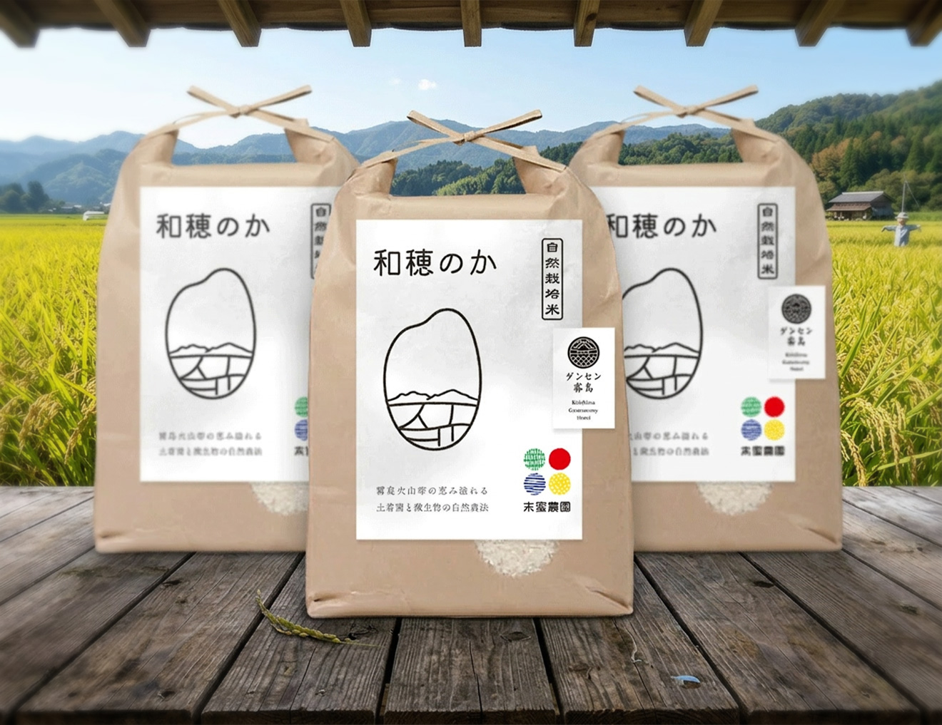 霧島市リブランディング事業でロゴデザインをご依頼をいただいた。最初の打ち合わせで、末蜜農園さまのお宅にお邪魔させていただき、れいこお母さんの美味しいおにぎりをご馳走になった。ダマリの祖父母も米を作っていたため、米農家さんのロゴデザインに携われることがとても嬉しかった。
